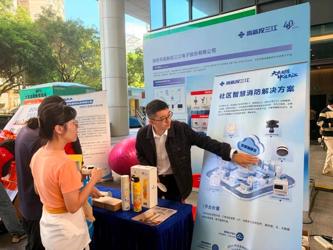 11月6日,高新投三江作为消防电子领域的领军企业,受邀参加由深圳市消防协会、福田区消防救援大队联合举办的“全民消防,生命至上 —— 安全用火用电”公益科普活动,活动旨在通过多元科普形式提升公众消防安全意识。高新投三江现场展示了针对社区场景的智慧消防解决方案,包括独立式光电感烟火灾探测器等核心产品,以科技力量助力构建安全社区生态。